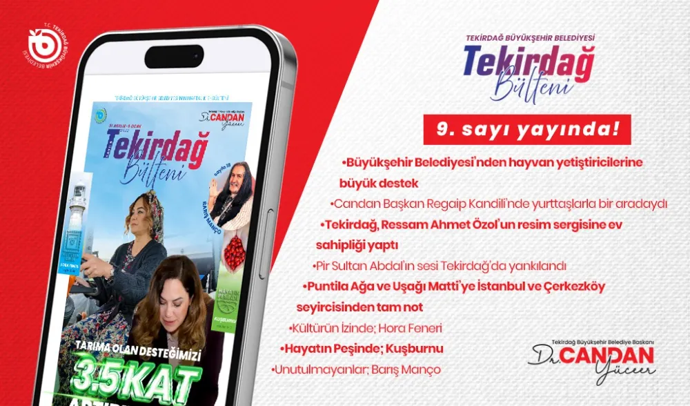 Tekirdağ Büyükşehir Belediyesi'nin haftalık olarak yayımladığı Tekirdağ Bülteni, 31 Aralık - 6 Ocak tarihlerini içeren 9. sayısıyla okuyucularla buluştu. Bu sayıda, şehrin nabzını tutan önemli gelişmeler, belediye hizmetleri ve kültürel etkinlikler yer alıyor.