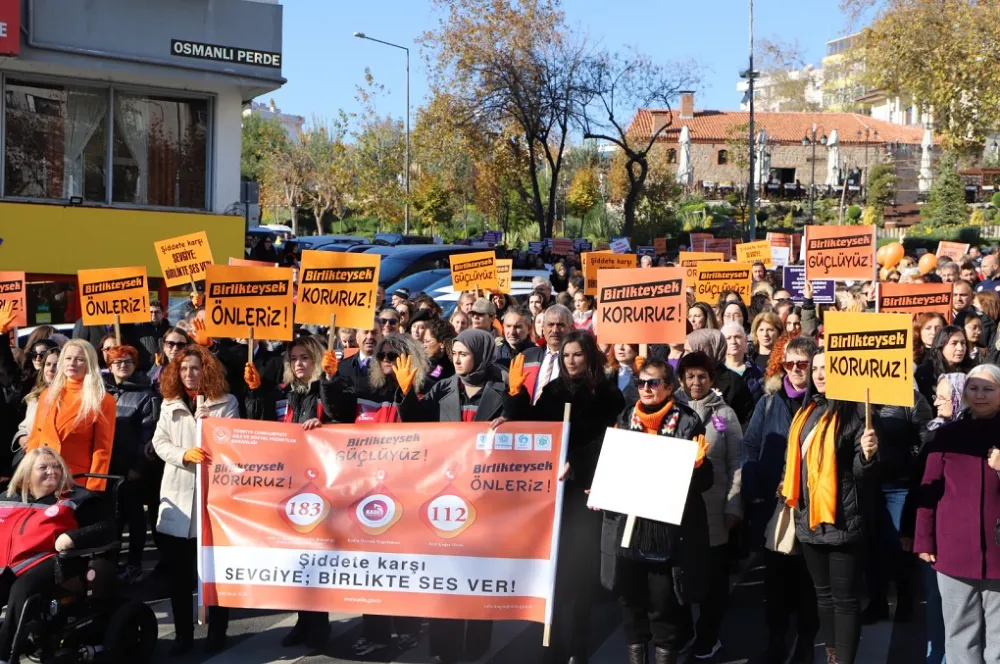 TEKİRDAĞ, KADINA ŞİDDETE KARŞI OLDUĞUNU HAYKIRMAK İÇİN YÜRÜDÜ