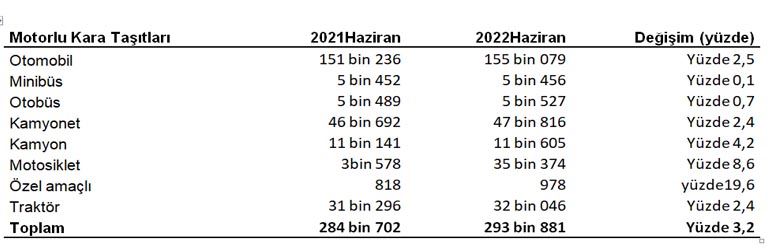 Tekirdağ'da 2022 yılı Haziran ayı itibarıyla, trafiğe kayıtlı motorlu kara taşıtlarında bir önceki yılın aynı ayına göre en yüksek artış sırasıyla; Özel amaçlı taşıt (yüzde 19,6), Motosiklet (yüzde 8,6), Kamyon (yüzde 4,2), Otomobil(yüzde 2,5), Kamyonet ve Traktör (yüzde 2,4), Otobüs (yüzde 0,7) ve Minibüs(yüzde 0,1) şeklinde gerçekleşmiştir." ifadelerini kullandı.