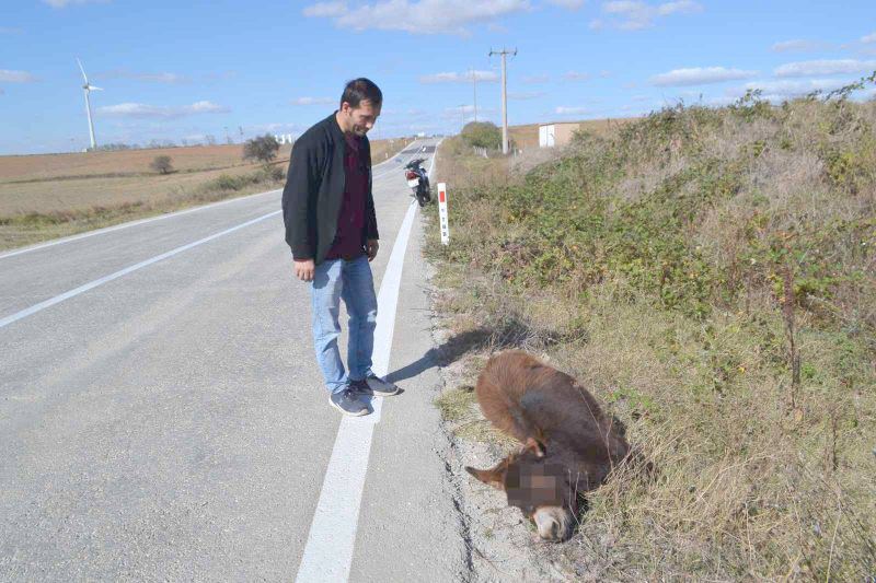 Tekirdağ’da arabanın çarpması sonucu telef olan eşeğin saatlerdir yol kenarında ölüme terk edilmesi ve olay yerinden kaldırılmaması vatandaşın içini acıttı.