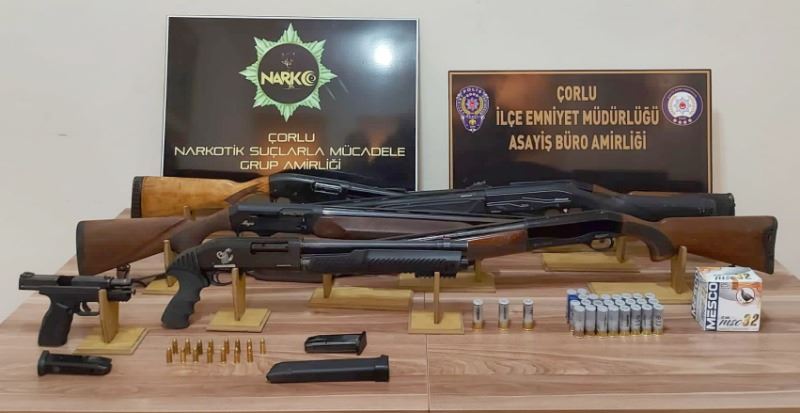 Tekirdağ’ın Çorlu ve Süleymanpaşa ilçelerinde düzenlenen şafak operasyonunda 20 kişi yakalandı, çok sayıda silah ele geçirildi ve uyuşturucu madde bulundu.