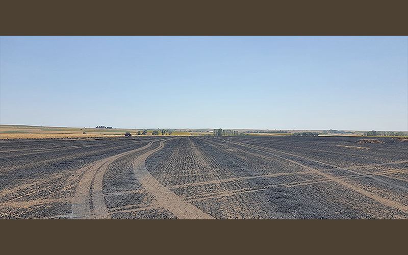 Tekirdağ'da bir arazide çalışan iş makinesinden çıkan kıvılcım 130 dönüm araziyi kül etti.