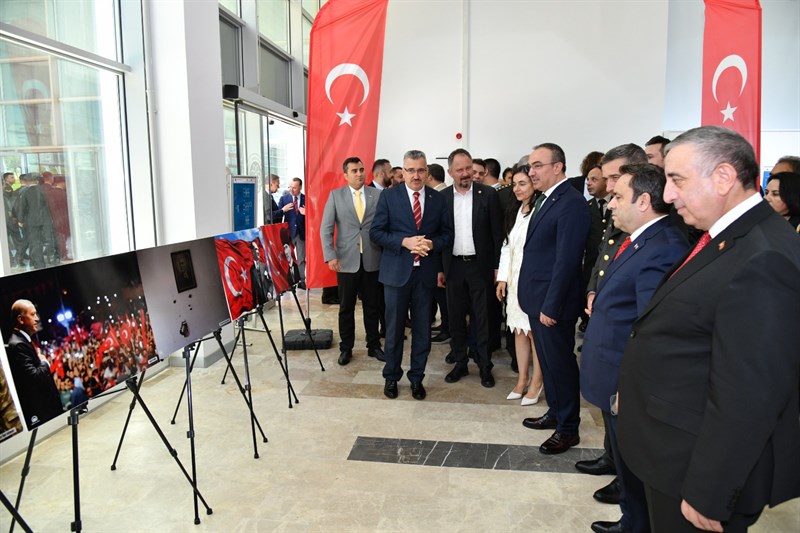 Daha sonra Rektörlük Fuaye Alanı’nda hazırlanan “15 Temmuz Demokrasi ve Milli Birlik Günü” konulu resim ve fotoğraf sergisi, Vali Soytürk ve protokol üyeleri tarafından gezildi.