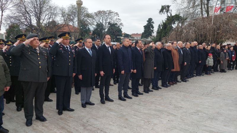 Tekirdağ Valiliği önünde düzenlenen törene; Tekirdağ Valisi Aziz Yıldırım, Garnizon Komutanı Tuğgeneral Şahin Yenilmez, Süleymanpaşa Belediye Başkanı Cüneyt Yüksel, siyasi parti temsilcileri ve vatandaşlar katıldı. Saygı duruşu ve İstiklal Marşının okunmasıyla Atatürk Heykeline çelenk sunuldu.