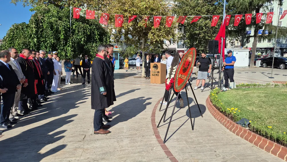 Valilik Meydanı’nda Atatürk Anıtı’na çelenk sunumuyla başlayan tören, saygı duruşu ve İstiklal Marşı’nın okunmasının ardından yapılan açıklamalarla devam etti.