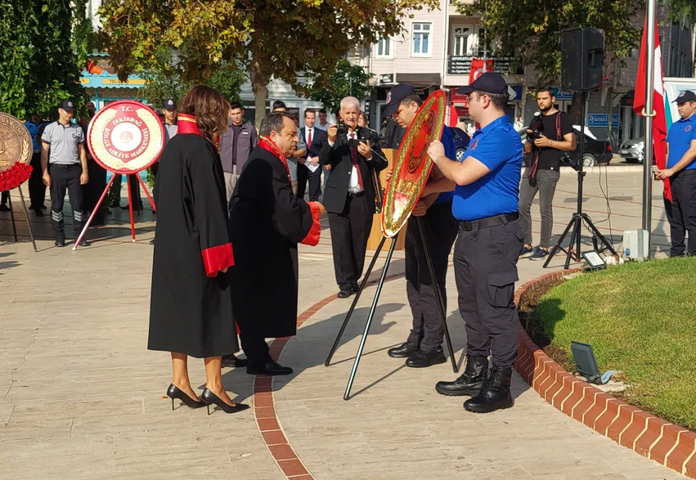 Törende, Tekirdağ Cumhuriyet Başsavcısı Erdal Şenol, Bölge Adliye Mahkemesi Başsavcısı Ünal Bingül ve Tekirdağ Baro Başkanı Egemen Gürcün tarafından Atatürk Anıtı’na çelenk sunuldu. Saygı duruşu ve İstiklal Marşı’nın okunmasının ardından Baro Başkanı Egemen Gürcün, adli yılın vatana ve millete hayırlı olmasını diledi.