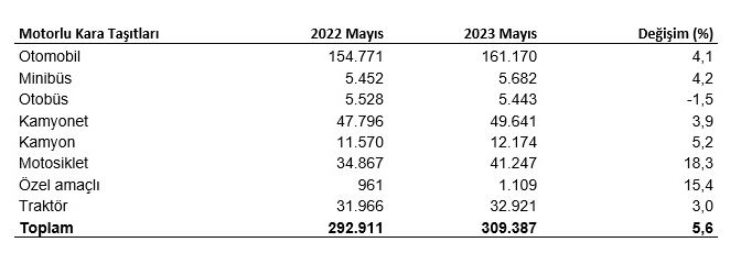 Tekirdağ’da 2023 yılı Mayıs ayı sonunda toplam trafiğe kayıtlı motorlu kara taşıtı sayısı bir önceki aya göre 2 bin 278 bir önceki yılın aynı ayına göre 16 bin 476 (yüzde 5,6) adet artarak 309 bin 387 adet oldu.