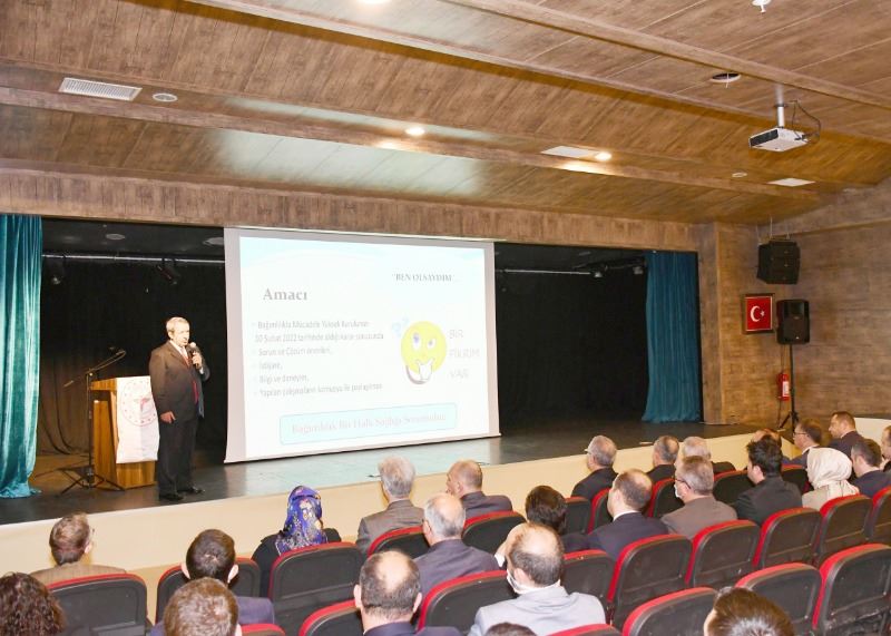 Çalıştay, saygı duruşunda bulunulması ve İstiklal Marşının okunmasının ardından Halk Sağlığı Başkanı Hacı Bayram Zengin’in bağımlılıklar hakkında bir sunum yapması ile başladı.
