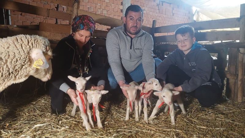 Tekirdağ’ın Malkara ilçesinde tek seferde beşiz doğuran koyun şaşırttı.
