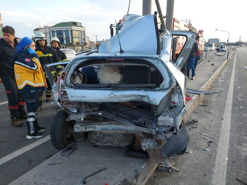 Kaza, İstanbul yolu üzeri Marmara Ereğlisi Belediye binası karşısında meydana geldi. Tekirdağ istikametine seyreden Beste Atakur idaresindeki 59 ABA 703 plakalı otomobil, sollama esnasında bir araçla çarpıştı. Kontrolden çıkan otomobil, yön tabelası direğine çarptı.
