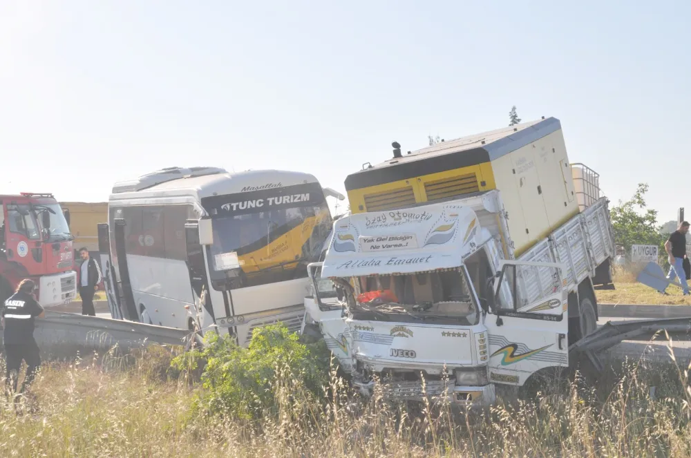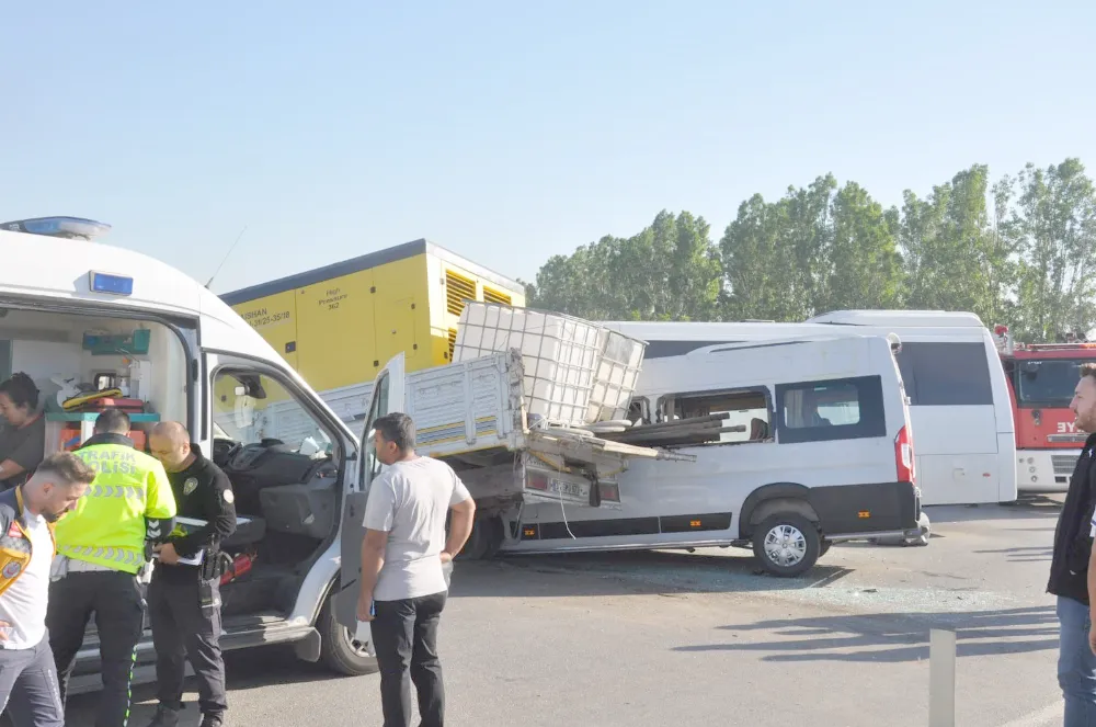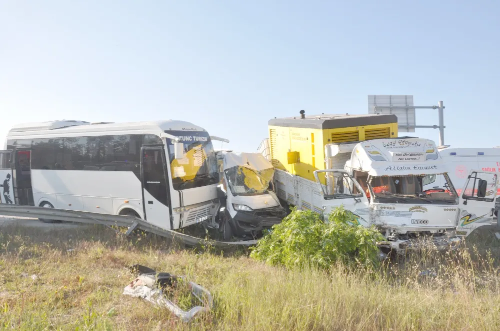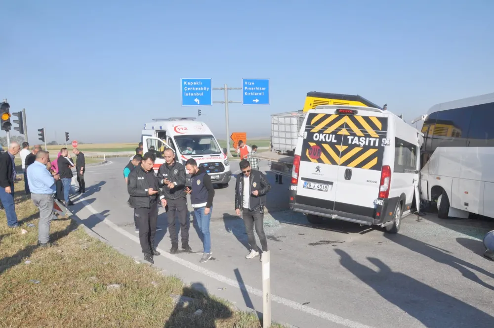 Tekirdağ’da kırmızı ışıkta bekleyen iki işçi servisine kamyonetin çarpması sonucu meydana gelen kazada 18 kişi yaralandı.