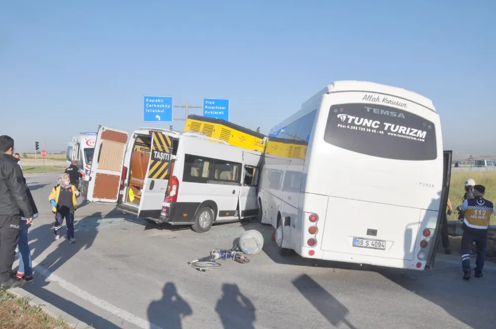 Kazada kamyonet sürücüsü U.K., 59 J 4015 plakalı içi servis sürücüsü T.G. ve C.S., R.S., E.T., Y. Ç., S.K., H.T., S.Ç, F.S., Ş.U., A.K., Ş.K., E.T., F.M., P.S., S.A. isimli işçiler yaralandı. Olay yerine çok sayıda itfaiye polis ve sağlık ekibi sevk edildi.