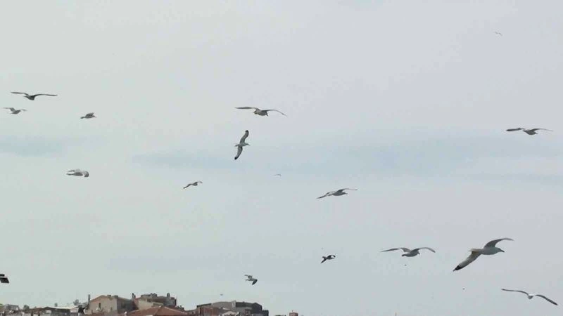 Marmara Denizi’nin Tekirdağ kıyılarında etkisini gösteren fırtına sebebiyle denizde dalgalar oluşurken, sert esen rüzgar sebebiyle martıların uçmakta zorlandığı görüldü.