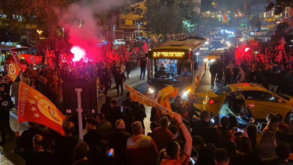 Tekirdağ’da toplanan Galatasaray taraftarları, takımlarının şampiyon olmasının ardından Cumhuriyet Meydanı başta olmak üzere birçok noktada konvoylar oluşturarak kutlamalara başladı. Sarı-kırmızılı renklere bürünen araçlar kornalar eşliğinde caddelerde tur atarken, bazı taraftarlar ise ellerindeki meşaleler ve bayraklarla meydanlarda marşlar söyledi.