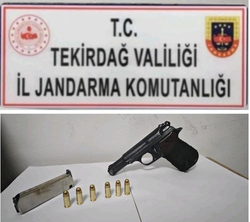 Tekirdağ İl Jandarma Komutanlığı ekipleri, 4 Ocak 2025 günü Süleymanpaşa ilçesi Barbaros Mahallesi’nde G.Ö.’nün aracında yaptığı kontrollerde bir adet tabanca, bir adet şarjör ve altı adet fişek ele geçirdi.