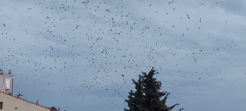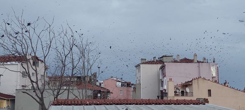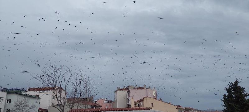 Tekirdağ merkezde karga sürüsü gökyüzünü istila ederken, filmlerdeki korku sahnelerini aratmayan görüntüler ortaya çıktı.