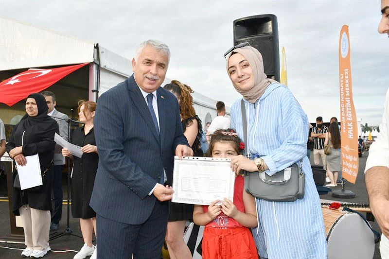 Ardından Süleymanpaşa ilçemizde Halk Eğitim Merkezleri’nde açılan okuma yazma kurslarını ve Açık Öğretim Lisesi’ni tamamlayarak belge ve diploma almaya hak kazanan kursiyerler ile öğrencilere sertifikalarını Vali Yıldırım taktim etti. Belge ve diplomam taktiminin ardından program halk oyunları gösterileri ve canlı müzik dinletisi ile devam etti.
