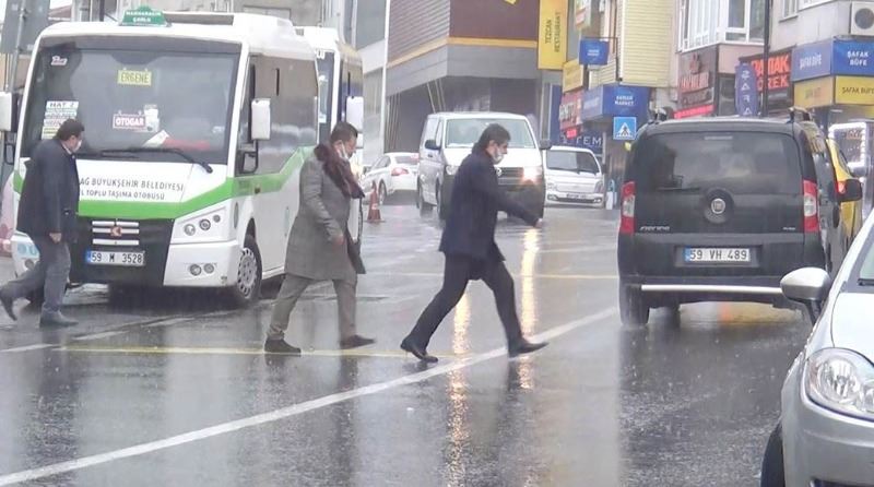 Meteoroloji Genel Müdürlüğünün Tekirdağ, Edirne ve Kırklareli için sağanak yağış uyarılarından sonra öğlen saatleri itibarıyla yağış şiddetini artırdı. Tekirdağ’ın Süleymanpaşa ilçesinde yağıştan dolayı hazırlıklı dışarıya çıkan vatandaşlar şemsiyelerini açarak yağıştan korunurken, hazırlıksız dışarıya çıkan kimi vatandaşlar ise tente ve binaların gölgesinde yağışın geçmesini bekledi.