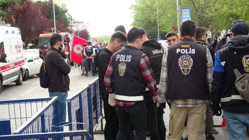 Polis ekiplerinin geniş güvenlik önlemleri altında üst aramasından geçirilerek Atatürk Meydanına girenler zaman zaman sloganlar attı. Aniden bastıran sağanak yağmurdan korunmak için yanlarında getirdikleri pankartları kullanırken, kimileri de alandan ayrıldı.