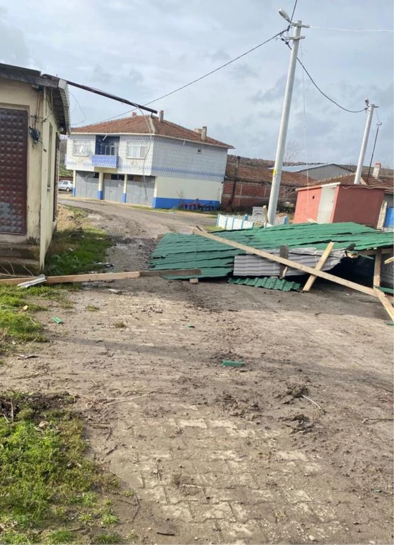 Tekirdağ’ın Hayrabolu ilçesinde şiddetli rüzgar, bir garajın çatısını uçurdu.