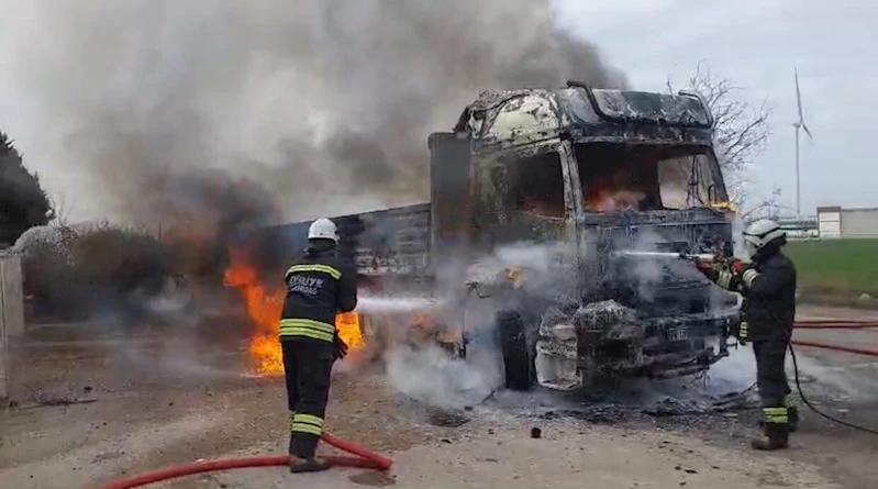 Tekirdağ’ın Ergene ilçesinde park halindeyken alev alan tır yanarak kullanılamaz hale geldi.