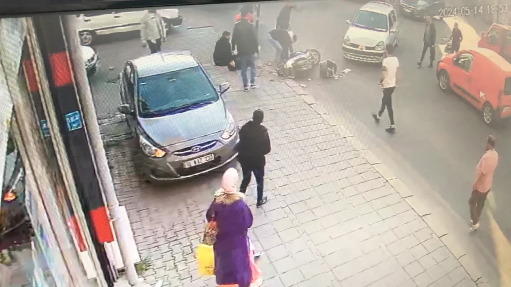 Tekirdağ Çorlu’da otomobil ile kafa kafaya çarpışan motosikletteki 2 kişinin yaralandığı kaza anı kameraya yansıdı.