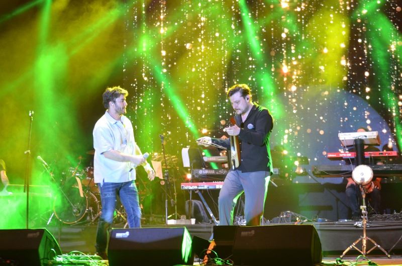 Süleymanpaşa Belediye Başkanı Cüneyt Yüksel, konserde sahneye çıkarak Mustafa Ceceli ve Ekin Uzunlar’a çiçek vererek Tekirdağ’ın meşhur kirazımdan ikram etti.