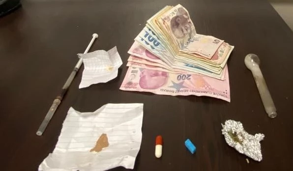 Aydoğdu Mah. E.K isimli şahıs üzerinde de yapılan aramada, daralı ağırlığı 1.68 gram olan metamfetamin uyuşturucu maddesi, daralı ağırlığı 0.97 gram esrar maddesi, 1 adet cam uyuşturucu kullanım aparatı pipe ve 1 adet çalışır vaziyette hassas terazi olduğu tespit edilerek muhafaza altına alındı. Konu ile ilgili şüpheli şahıs ifadesi alınmak üzere gözaltına alındı.