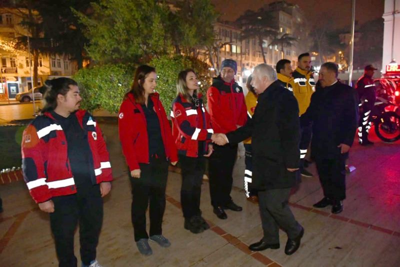Tekirdağ’da vatandaşların yeni yıla huzurlu girmesi için jandarma ve polis tarafından denetimler artırıldı. Tekirdağ Valisi Aziz Yıldırım’da denetimlere katıldı. Uygulama Noktalarında durdurulan araçlardaki sürücülerle sohbet eden Vali Yıldırım, yeni yıllarını kutlayarak, yeni yılın sağlık, mutluluk ve başarı getirmesini temenni etti. Ardından İtfaiye’yi ve Polis Harekat Merkezi’ni ziyaret eden Vali Yıldırım, görevi başında bulunan personelin yeni yılını kutlayarak görevlerinde başarılar diledi.