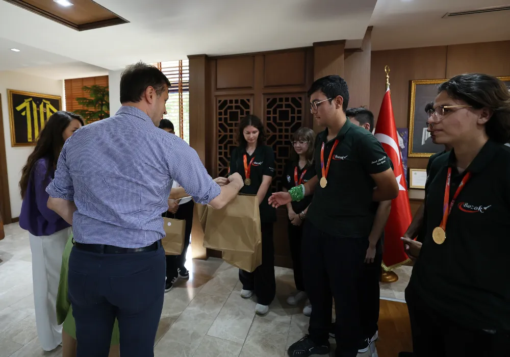 Çerkezköy Belediye Başkanı Vahap Akay, Türkiye’nin en büyük teknoloji festivali TEKNOFEST 2025’te büyük bir başarıya imza atarak ilçeyi gururlandıran Seval Ahmet Çetin Fen Lisesi öğrencilerini makamında ağırladı.