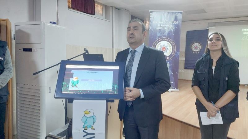 Evin Salim’in yaptığı afiş Tekirdağ’ın yanı sıra Ankara başta olmak üzere birçok ilin emniyet müdürlüklerince siber anlatımlarında kullanılacak. Ödül takdim töreninden sonra Siber Şube tarafından öğrencilere ‘Güvenli ve bilinçli internet kullanımı, siber zorbalık, siber suç ve teknoloji bağımlılığı’ konularında seminer gerçekleştirildi. Seminer kioks makinesi ile bilgi yarışması düzenlenerek, kazanan öğrencilere çeşitli ödüller verildi.