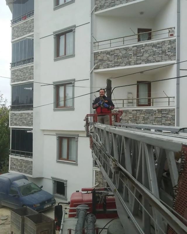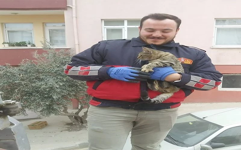 Bölgeye gelen itfaiye ekipleri, araçlarının merdiveni ile ulaştıkları kediyi kurtardı. Veteriner tarafından kontrol edilen kedi, daha sonra doğal ortamına bırakıldı.