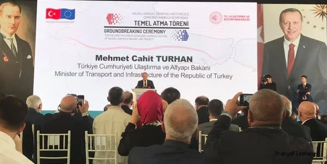 Temel atma töreni öncesi bir konuşma gerçekleştiren Bakan Turhan, "Avrupa Birliği Katılım Öncesi Mali Yardımları kapsamında 2007-2013 yıllarını kapsayan IPA-1 döneminde Ankara-İstanbul Hattı Köseköy-Gebze Kesimi, Irmak-Karabük-Zonguldak Demiryolu Hattı ve Samsun-Kalın Demiryolu Hattı Projeleri için toplamda 475 milyon Avro`luk bir hibe fonunu başarılı bir şekilde kullanmıştır. Halkalı-Kapıkule Demiryolu Hattı Projesi de 2014-2020 yıllarını kapsayan IPA-II Döneminde Bakanlığımızın gerçekleştirdiği en büyük alt yapı projesidir. Projeye tahsis edilen fon, ülkemize IPA-II döneminde tahsis edilen toplam fonun yaklaşık yüzde 8`ini, ulaştırma sektörüne tahsis edilen fonun ise yüzde 74`ünü oluşturmaktadır. Diğer bir deyişle, 275 milyon avroluk IPA fonu miktarı ile Avrupa Birliğinin aday ülkelere IPA kapsamında tek kalemde en fazla fon aldığı proje niteliğindedir. Bütçe büyüklüğü ve teknik özelliklerinin yanı sıra ülkemizin Bulgaristan sınırından İstanbul`a kadar uzanan güzergahıyla, Halkalı-Kapıkule Demiryolu Hattı Projesi coğrafi olarak Türkiye`nin AB`ye bağlanmasını da simgelemektedir" dedi.
