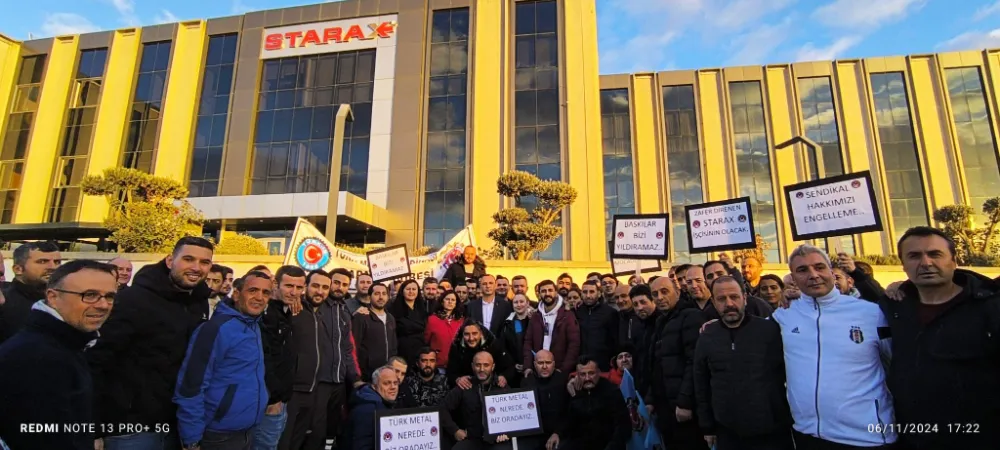 “Velimeşe Organize Sanayisinde Metal iş kolunda faaliyet gösteren Star Mutfak ve Mobilya Aksesuarları Sanayi Ticaret Anonim Şirketi Çalışanları Anayasal haklarını kullanarak Sendikamız Türk Metal’ e üye olmuşlardır. Örgütlenme özgürlüğü Anayasa ve Yasalar tarafından güvence altındadır. Bunu engellemek suçtur. Türk Metal Sendikası olarak amacımız işyerinde güvenli ve sağlıklı iş ortamı sağlamak, çalışanların sosyal haklarını geliştirmek ve iyileştirmektir. En büyük güç sendikal birlik ve beraberlikten geçmektedir. Buradan STARAX yöneticilerine sesleniyoruz.