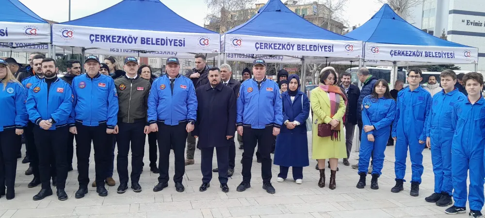 Programda konuşan THK Çerkezköy Şube Başkanı Serkan Karagöz ise, “THK 100. Kuruluş yıldönümü etkinlikleri büyük onur ve gururla Ankara’da Anıtkabir’de düzenleniyor. Törenler başladı. Bugünde Çerkezköy’de başladı. 100 yıllık gurur dolu tarihimize yaraşır, bu anlamlı günde THK olarak gökyüzündeki izimizi dahada ilerlere taşımaya kararlıyız. Milletin kurumu, THK kurumu gelecekte de Türkiye’nin havacılık tarihine yön vermeye ve yeni nesillere ilham olmaya devam etmektedir. THK 1925 yılında Atatürk tarafından savunma sanayiye ve havacılık sektörüne destek vermek amacıyla kurulmuştur. Ayrıca halkımızın yardımlarıyla da hava kuvvetleri komutanlığına da 376 askeri uçak teslim edilmiştir. THK havacılık eğitimi vermiş ve havacılık eğitimi veren sektöre de destek olmuştur. “ açıklamalarında bulundu.