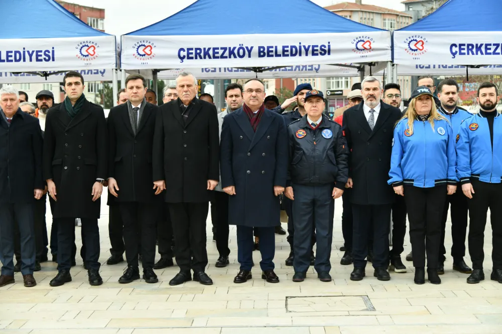 Çerkezköy’de düzenlenen törene Vali Recep Soytürk’ün yanı sıra Çerkezköy Kaymakamı Nazmi Günlü, Çerkezköy Belediye Başkanı Vahap Akay, Çerkezköy Ticaret ve Sanayi Odası Başkanı Ahmet Çetin, Türk Hava Kurumu (THK) Çerkezköy Şube Başkanı olan Serkan Karagöz katıldı.