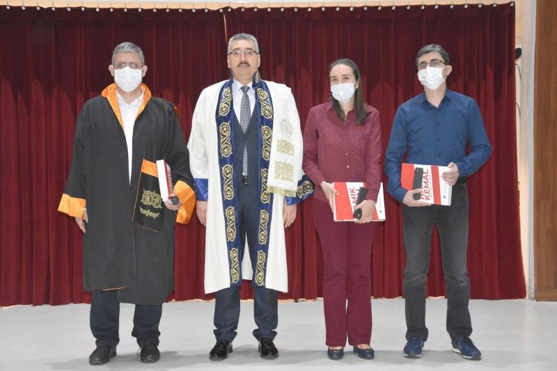 Ardından programın tören kısmına geçildi. Törende ilk önce ABD’nin Stanford Üniversitesi’nden bilim insanları tarafından her yıl oluşturulan ve Hollanda merkezli yayıncılık şirketi olan Elsevier’in yayınladığı ‘Dünya’nın En Etkili Bilim İnsanları Listesi’ne giren Tekirdağ Namık Kemal Üniversitesi akademisyenleri sahneye davet edildi. Üniversite Rektörü Prof. Dr. Mümin Şahin, ‘Kariyer Boyu Etki’ ve ‘Yıllık Etki’ olmak üzere her iki kategoride kendisinin de dahil olduğu listede yer alan Üniversite Fen Edebiyat Fakültesi Kimya Bölümü Öğretim Üyesi Prof. Dr. Murat Ateş’e ve ardından ‘Yıllık Etki’ kategorisinde listede yer alan Bilimsel ve Teknolojik Uygulama ve Araştırma Merkezi (NABİLTEM) Müdür Yardımcısı Doç. Dr. Muhammet Aydın ile NABİLTEM Akademik Personeli Doç. Dr. Elif Burcu Aydın’ı tebrik ederek Üniversitenin prestij yayını ‘Namık Kemal - Hayatı, Düşünceleri ve Eserleri’ kitabını takdim etti. Rektör Şahin kendilerini başarılarından ötürü kutlarken, tüm akademisyenlerimize de daha çok makale ve akademik çalışma çağrısında bulundu.