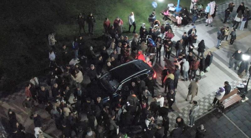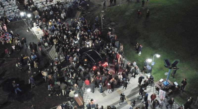 İftar programından sonra Türkiye’nin yerli otomobilini merak eden yüzlerce vatandaş, aracın başına akın etti. Aracın başına akın eden vatandaşlar Togg’un etrafını sarmalayıp bol bol fotoğraf çektirdi. Vatandaşların o anları ise dron ile havadan görüntülendi.