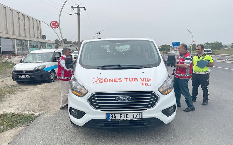 Tekirdağ'da toplu ulaşım araçlarına, Ulaştırma ve Altyapı Bakanlığına bağlı trafik ekipleri denetim gerçekleştirdi.