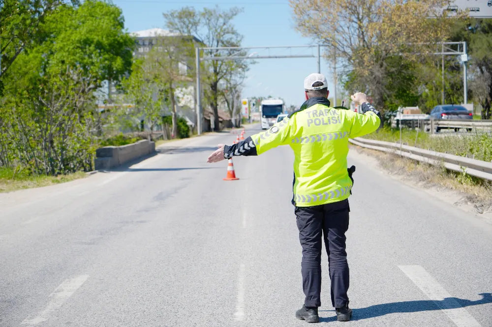 Edirne’de Ramazan Bayramı nedeniyle yolarda yoğunluk oluşurken, İl Emniyet Müdürlüğü Trafik Tescil ve Denetleme ekipleri şehirden çıkış yapan sürücülerle bayramlaştı. Sürücülere bayramda daha güvenli bir şekilde seyahat etmeleri konusunda uyarılarda bulunan ekipler, çocuklara kırmızı düdük, ailelere ise şeker ve kolonya ikramında bulundu.