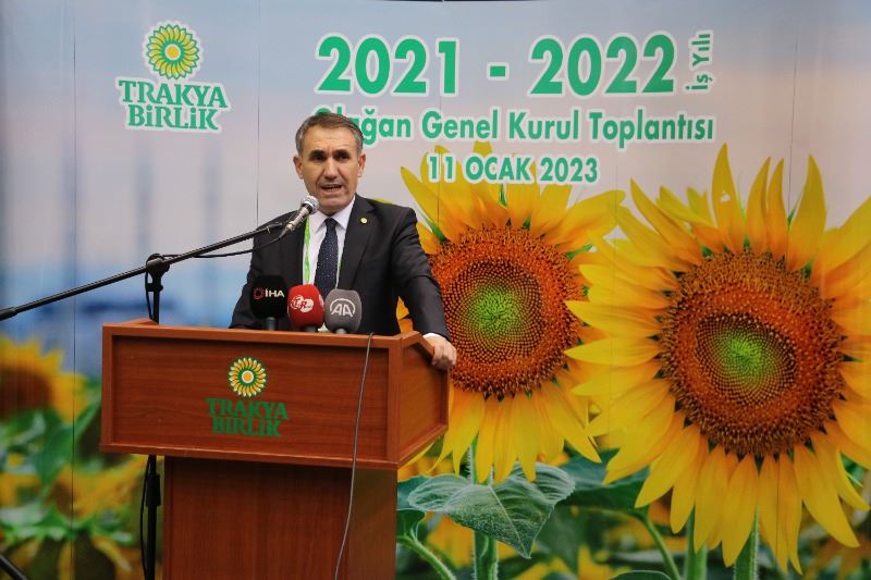 Trakya Birlik yeni yönetimi, 2021-2022 İş Yılı Olağan Genel Kurulu başladı. Genel kurula Trakya Birlik yönetim kurulu üyeleri, Marmara Bölgesi’ndeki 35 kooperatifin yönetim kurulu üyeleri, sivil toplum kuruluşu temsilcileri ve birlik ortakları katıldı. Genel kurulda 298 oy kullanıldı. 2’sinin geçersiz sayıldığı seçimlerde Mavi liste ile seçime giden Şafak Kırbiç ve ekibi 215, Sarı liste ile seçime giden Cem Özkan ve ekibi ise 81 oy aldı. Mimar Sinan Spor Salonu’nda gerçekleştirilen genel kurulda konuşma yapan Trakya Birlik Yönetim Kurulu Başkanı Şafak Kırbiç, geçtiğimiz yıl 311 bin 220 ton ayçiçeği mubayaası (satın alım) gerçekleştirdiklerini belirtti. Trakya Birlik’in yoğun emek ve çaba sarf ettiğini aktaran Kırbiç, kamuoyunun beklediği ayçiçeği fiyatının belirlenmesi ve ortakların emeklerinin karşılığının ödenmesi için ellerinden geleni yaptıklarını ifade etti. 2021-2022 iş yılını başarılı geçirdiklerini söyleyen Kırbiç, 2021 yılında 278 bin 465 ton olan ürün mubayaasının 2022’de 311 bin 220 ton olarak gerçekleştiğini belirtti.