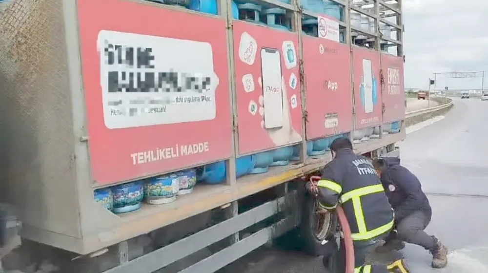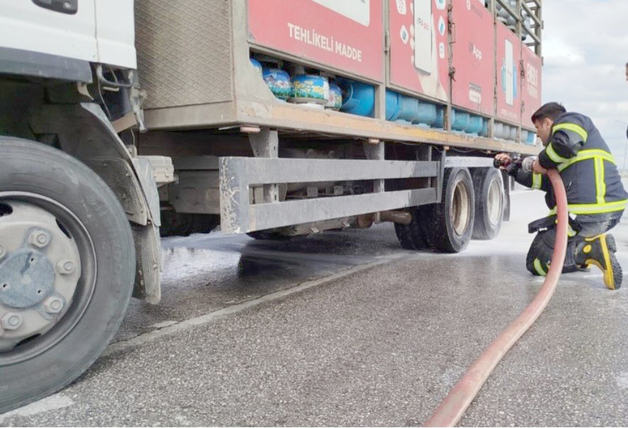 Kırklareli’nin Babaeski ilçesinde tüp yüklü kamyonun lastikleri alev aldı. İtfaiye ekiplerinin zamanında müdahalesi faciayı önledi.