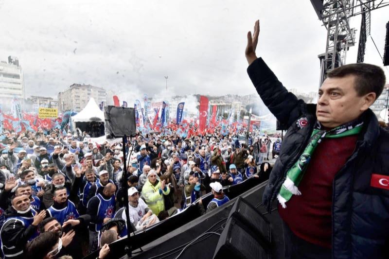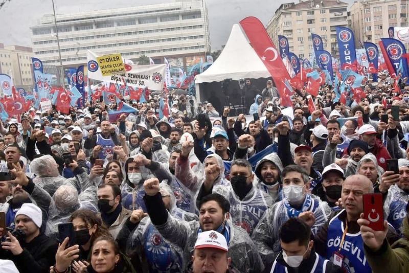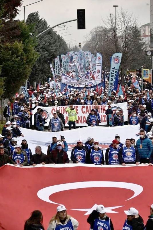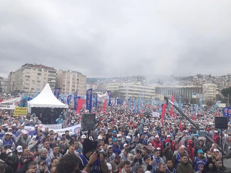 Türk Metal üyesi yüz bine yakın emekçi Kocaeli’nde bir araya geldi. Türk Metal’in düzenlendiği ilk büyük miting bugün İzmit’te yapılmış oldu. İşçiler, MESS’in yüzde 17’lik zammını protesto etmek amacıyla alanlara çıktı. Türk Metal Sendikası Genel Başkanı Pevrul Kavlak, “On binlerle Kocaeli’den sesleniyoruz. Bilmeyenlere, görmeyenlere sesimizi duymayanlara olanca gücümüzle bağırıyoruz. Eylemse eylem, grevse grev. Nedeni olmadığımız bir sorunun mağduru olmak istemiyoruz” dedi.