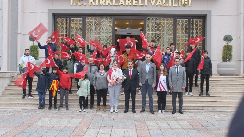 Türkiye Salon Federasyon Kupası ve Milli Takım Seçme Yarışması’nda "Barebow U21" kategorisinde Türkiye 1’incisi olarak altın madalyayı almaya ve milli sporcu olmaya hak kazanan Kırklareli'li sporcu Dilara Ecem Deniz, memleketinde coşkuyla karşılandı.