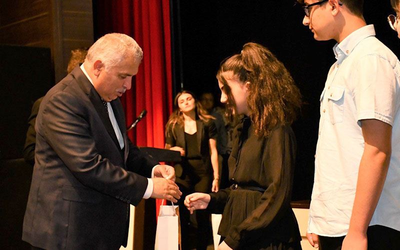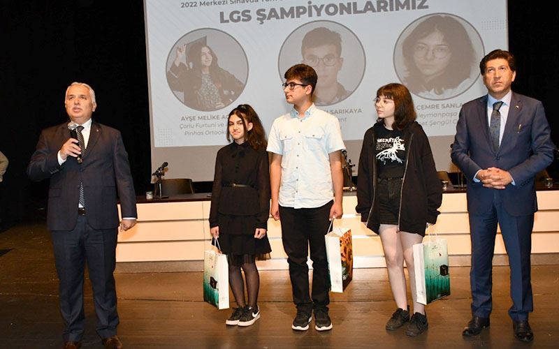 Tekirdağ’ın Süleymanpaşa ilçesinde bulunan Yahya Kemal Beyatlı Kültür Merkezi’nde Tekirdağ Valiliği tarafından düzenlenen Genel Değerlendirme Toplantısı öncesinde 2022 Yılı Liselere Geçiş Sistemi (LGS) Sınavı’nda 500 tam puan alıp ’Türkiye birincisi’ olan öğrencilere çeşitli hediyeler verildi.
