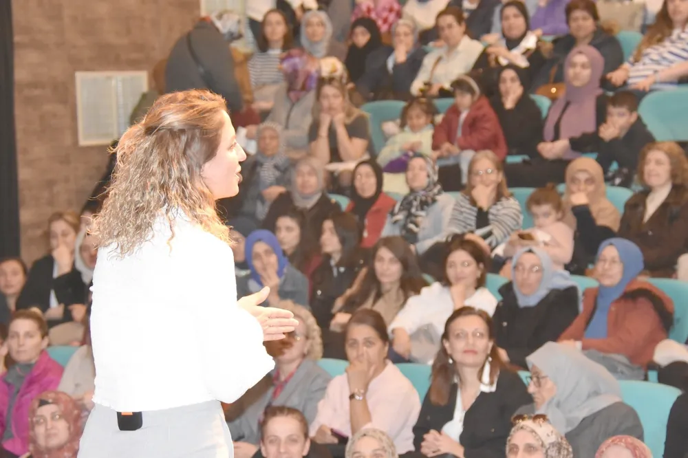 26 Mart Salı günü, son dönemde sosyal medyada çocuk gelişimi üzerine yaptığı eğitici paylaşımlarla Türkiye’nin en çok takip edilen isimlerinden biri haline gelen Yazar Dilek Cesur, Sabırlı Aileler Merhametli Çocuklar Yetiştirir isimli söyleşide Süleymanpaşalı annelerle bir araya geldi. Yahya Kemal Beyatlı Kültür Merkezi’nde gerçekleştirilen söyleşiye her yaştan kadın büyük ilgi gösterdi. 450 kişilik salon hıncahınç doldu, izleyiciler söyleşiyi merdivenler, sahne önü ve hatta sahne üzerinde oturarak ve çok sayıda izleyici de ayakta takip etti. Yaklaşık 70 dakika sahnede kalan Dilek Cesur, çocuk yetiştirirken farkında olmadan yapılan ve gelecekte ciddi etkiler doğurabilecek hatalardan bahsetti, küçük müdahalelerle her yaştaki çocuklarla nasıl doğru iletişim kurulabileceğine dair önemli ipuçları verdi. Söyleşinin ardından Süleymanpaşa Belediye Başkan Yardımcısı Nuray Aşan, Yazar Dilek Cesur’a çiçek takdim etti.