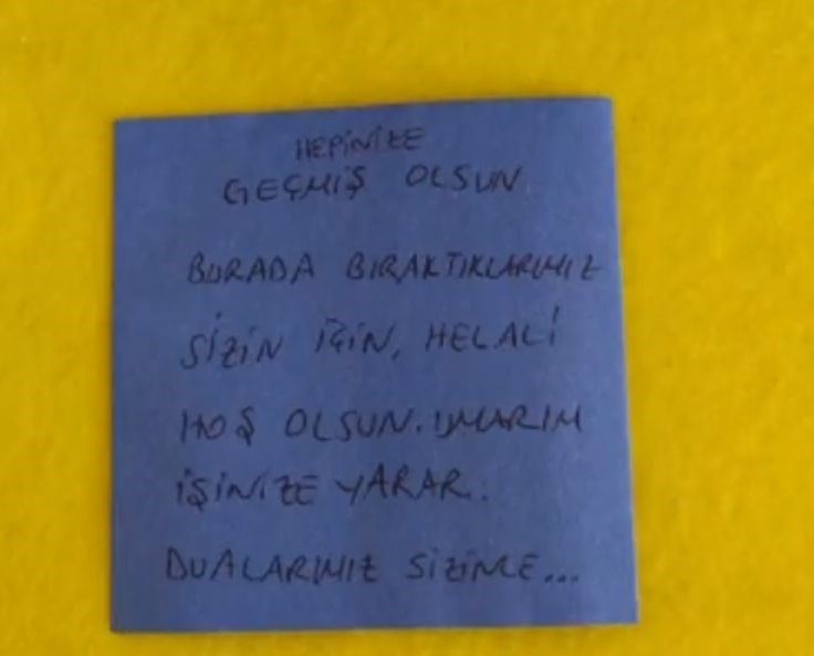 Öğrencilerin dolaplara ve masaların üzerine, “Hepinize geçmiş olsun. Burada bıraktıklarımız sizin için helal, hoş olsun umarım işinize yarar. Dualarımız sizinle”, “Mutlu insanlar kentine hoş geldiniz, inşallah burada çok mutlu olursunuz” gibi yazılı notlar dikkat çekti.
