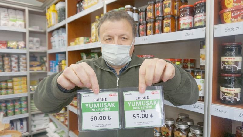 Edirne’de denetim yapılan işyeri sorumlusu Ercan Tam, “Yüzde 7’lik KDV indiriminden dolayı biz de ürünlerimizde aynı oranda yansıttık. Vatana millete hayırlı olsun. Listedeki tüm ürünlerde yüzde 7 indirim yaptık. Süt ürünleri ve temel gıda ürünlerinden KDV yüzde 1’e düştü. Süt ürünlerindeki yüzde 7’lik indirim yaklaşık olarak ürün çeşitlerine göre yaklaşık 5 lira ile 10 lira arasında düşmüştür. Örneğin 65 liraya sattığımız sert inek beyaz peyniri 60 lira, daha önce 60 liraya sattığımız yumuşak inek 50 lira” dedi. Uygulamanın hem kendilerini hem de vatandaşları memnun edeceğini belirten Tam, bu indirimin işlerine de olumlu yansıyacağını aktardı. Peynir almaya gelen vatandaşlardan Ahmet Mandacı, yapılan indirimlerden çok memnun olduklarını belirtti.