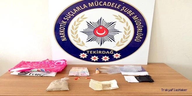 Çorlu Narkotik Suçlarla Mücadele Grup Amirliği görevlilerinin yapmış oldukları kapsamlı çalışmalar sonucu; Çorlu?da uyuşturucu madde ticareti yaptığı tespit edilen iki adrese farklı zamanlarda yapılan operasyonlarda toplam 509 gram eroin maddesi, 235 adet Captagon olduğu değerlendirilen uyuşturucu hap, çeşitli materyaller, 2 adet cumhuriyet altını ve uyuşturucu madde ticaretinden elde edildiği değerlendirilen bir miktar para ele geçirildi.
