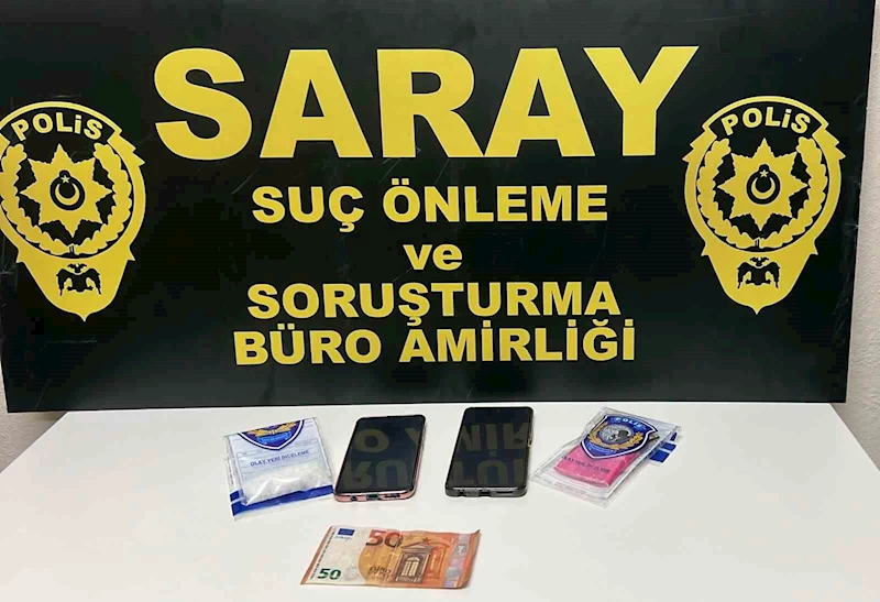 Saray ilçesi Kemalpaşa Mahallesi Hürriyet Caddesi üzerinde üzerinde devriye görevi gerçekleştiren Asayiş Bürosu ekipleri park halindeki bir otomobilden şüphelendiler. Şüphe üzerine otomobil ve otomobilde bulunan M.L. isimli şahsın yapılan kaba üst aramasında 15.1 gram metamfetamin isimli uyuşturucu ile 50 Euro sahte olduğu değerlendirilen banknot ele geçirildi.